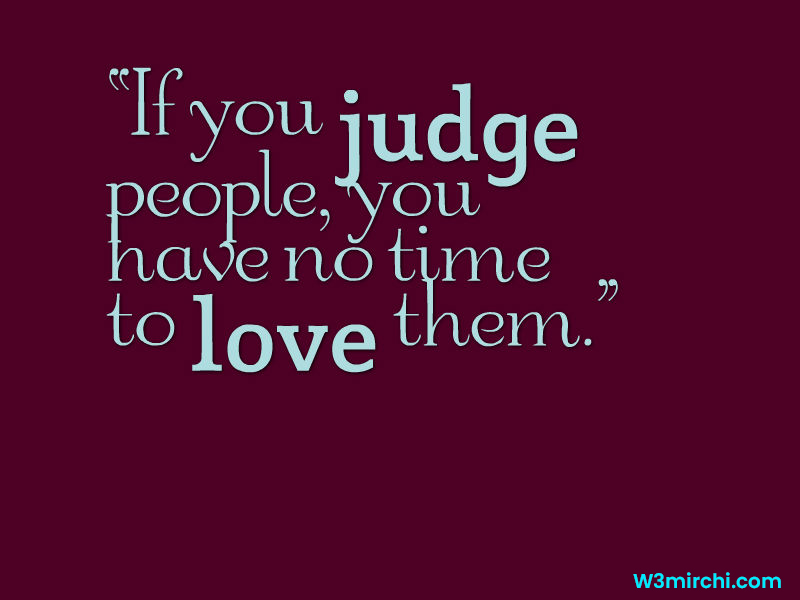 If you judge people, you have no time to love them