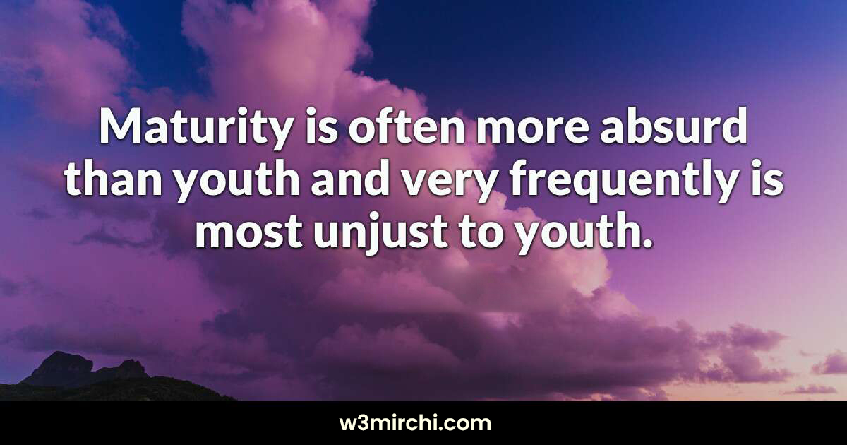 Maturity is often more absurd than youth and very frequently is most unjust to youth.