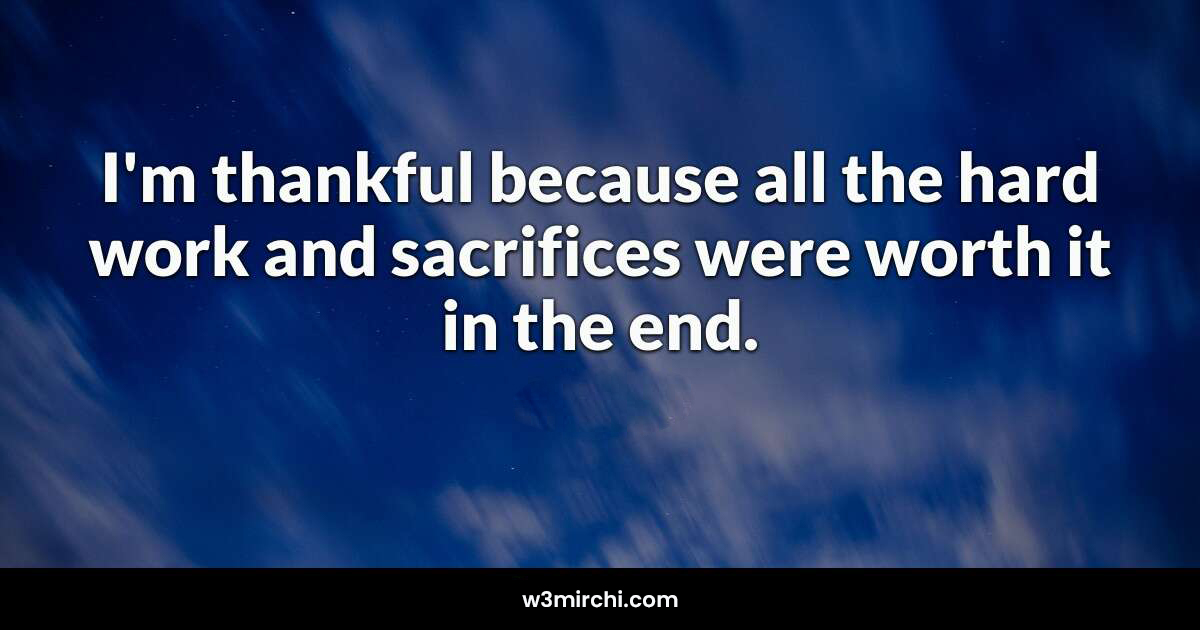 I'm thankful because all the hard work and sacrifices were worth it in the end.